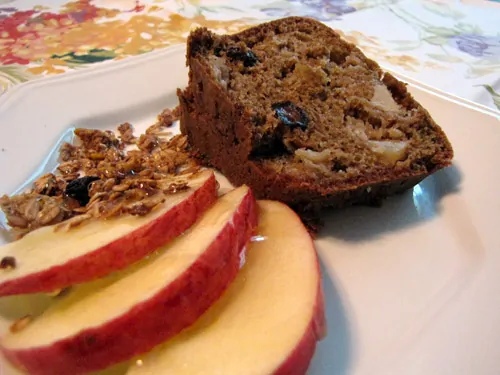 - Numa tigela coloque as maçãs e banana picadinhas, a farinha e o açúcar peneirados, misture e acrescente a aveia, a linhaça, a canela em pó, despeje a mistura do liquidificador, e por último coloque o fermento em pó, misture e coloque em forma untada e polvilhada com farinha de trigo. Forno preaquecido 200º por 40 minutos +ou- ou até que esteja assado e dourado.